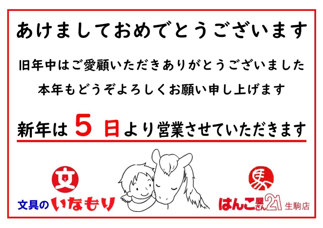 新年は5日から通常通り営業します